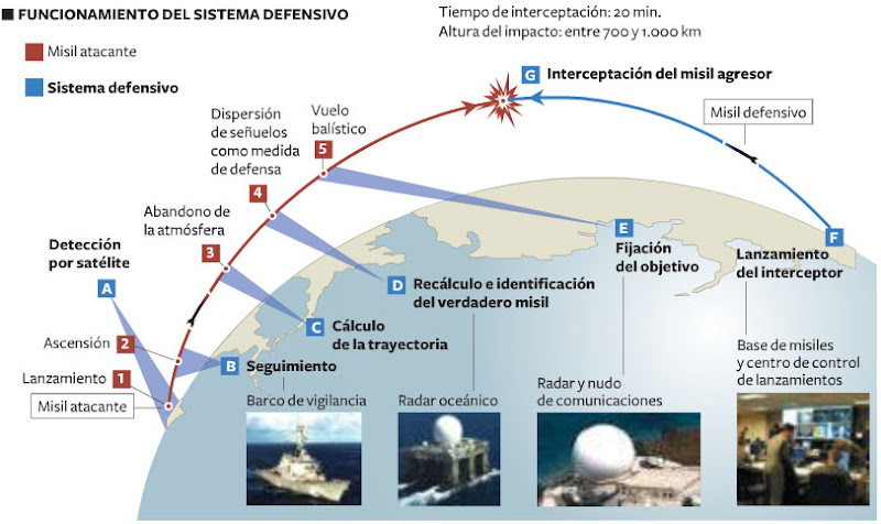 El sistema defensivo combinaba una serie de radares en tierra, mar y en el espacio y misiles interceptores para eliminarlos en mitad de su trayectoria, o incluso en la fase de propulsión, momento en que son mas fácilmente alcanzados.