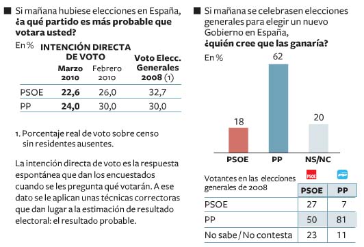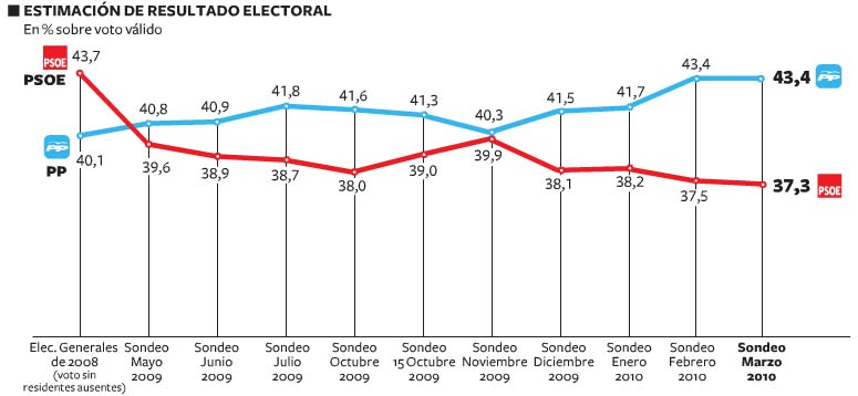 El último sondeo realizado en este mes de marzo de 2010 por Metroscopia bajo el encargo del diario el País viene clarificar ciertos puntos del estado de nuestra política actual.