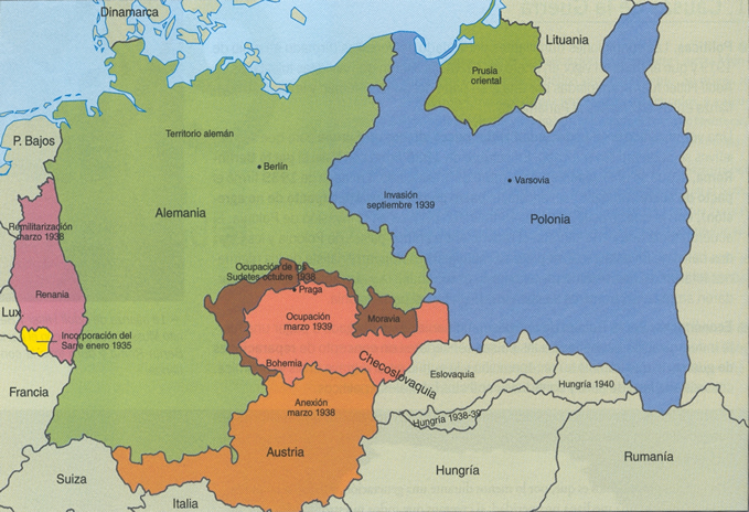 La última anexión que los aliados toleraron antes de entrar en guerra con Alemania fueron los Sudetes, en Checoslovaquia. Zonas fronterizas del oeste y el norte que lindaban con Alemania y Austria y que tenían una población de habla alemana de 3 millones de habitantes. Una zona rica en recursos minerales y que albergaba importantes fábricas de municiones. En Munich, en septiembre de 1939, Gran Bretaña, Francia, Italia y Alemania acordaban que los Sudetes de habla alemana fueran transferidos al Reich, pero que su expansión territorial se detuviera ahí.