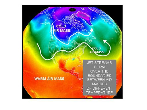 Con el nombre de Jet Stream se denominan a las corrientes de aire que se producen a una altura de unos 10.000 metros cuando entran en contacto las masas de aire frío provenientes de los polos con las de aire cálido del trópico. Se trata de corrientes que circulan por un pasadizo bastante estrecho a velocidades medias de unos 200 km/h pero que pueden alcanzar incluso los 600 km/h dando lugar a procesos ciclónicos que alcanzan la Tierra convirtiéndose en el fenómeno conocido como la Gota Fría.