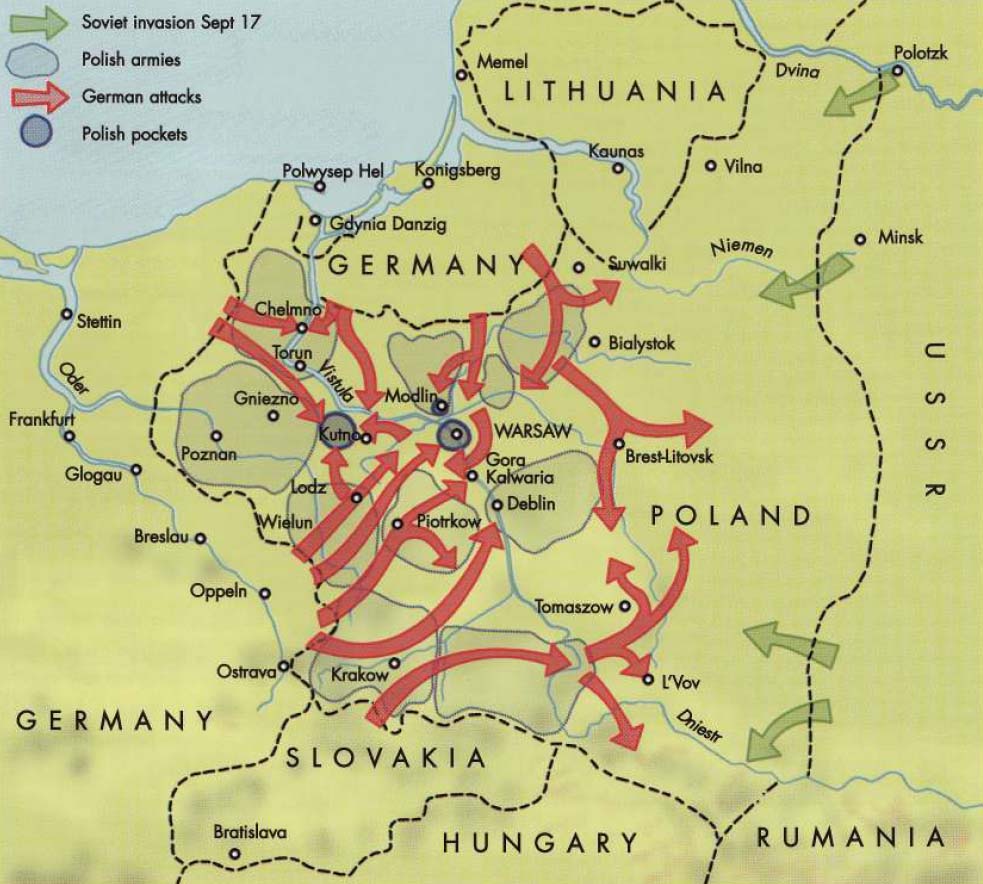 Tras el fulminante ataque del ejército alemán por tres frentes simultáneos, las fuerzas polacas quedaron divididas en diversas bolsas que fueron presa para los invasores.