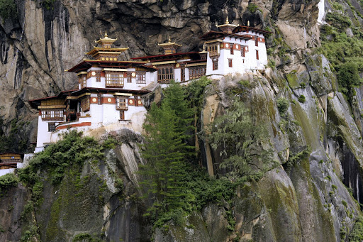 Aferrado al borde de un acantilado de 900 metros, Taktshang Goemba o monasterio del Nido del Tigre, es uno de los lugares más sagrados del reino de Bhután. Cuenta la leyenda que Guru Rinpoche, el segundo Buda, voló hacia el acantilado, y luego meditó en una cueva que en la actualidad existe dentro de los muros del monasterio.